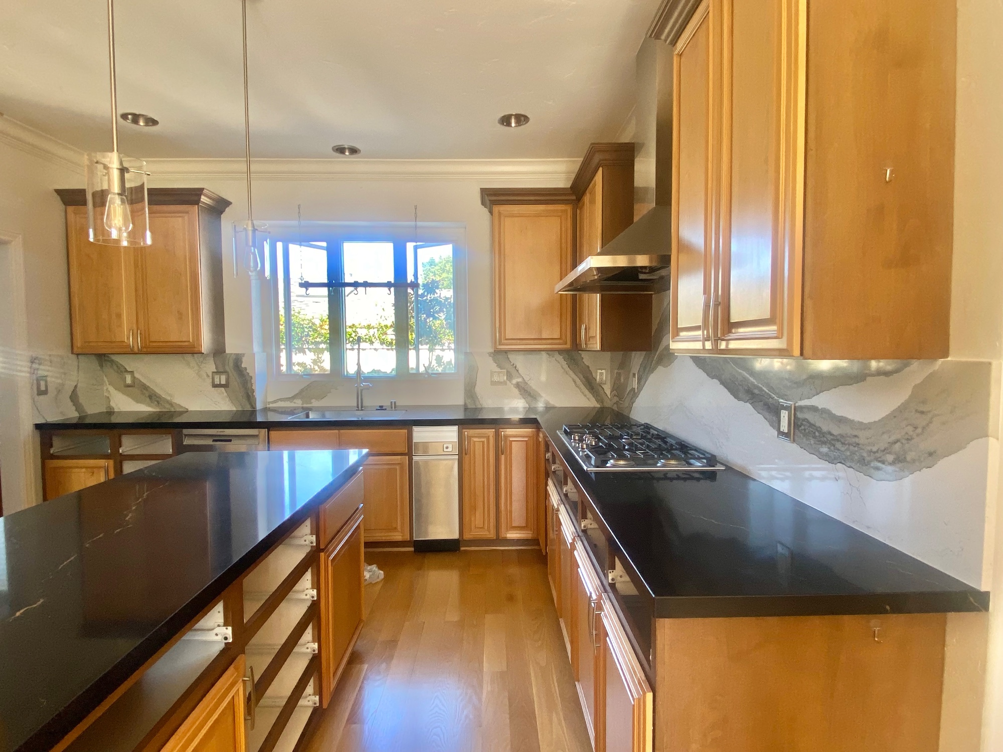 This is a renovation project. The cabinets are the original one. The client only renovated the island, countertops and backsplash.